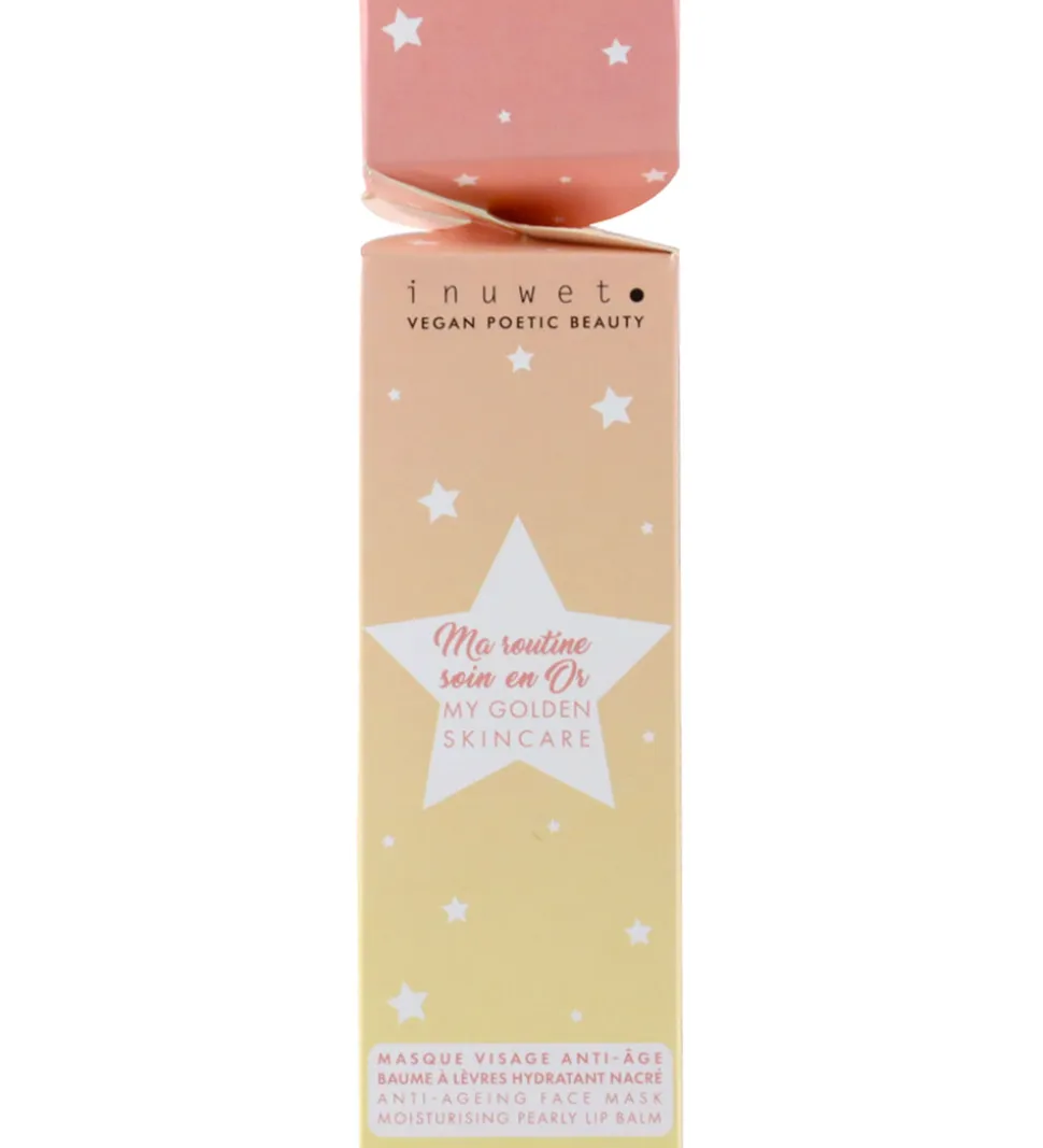 Stilfuldt Inuwet gavesæt der består af en læbepomade i farven cheesecake med duft og en anti-aging bio-cellulose ansigtsmaske. Inuwet gavesættet er perfekt til at tilføje et strejf af finesse.