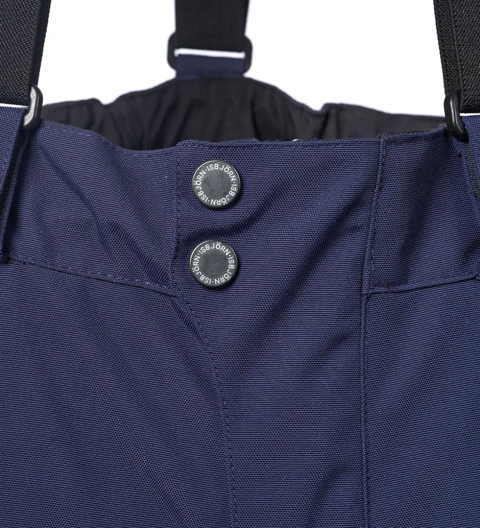 Isbjörn Of Sweden skalbuksene har smarte, justerbare seler, som samles på ryggen. Selerne sidder fast med velcroremme i livåbningen, så de kan tages af. hvis det ønskes. Livåbningen har en elastikkant bagtil og kan desuden justeres ind ved hjælp af velcroremme i siderne.