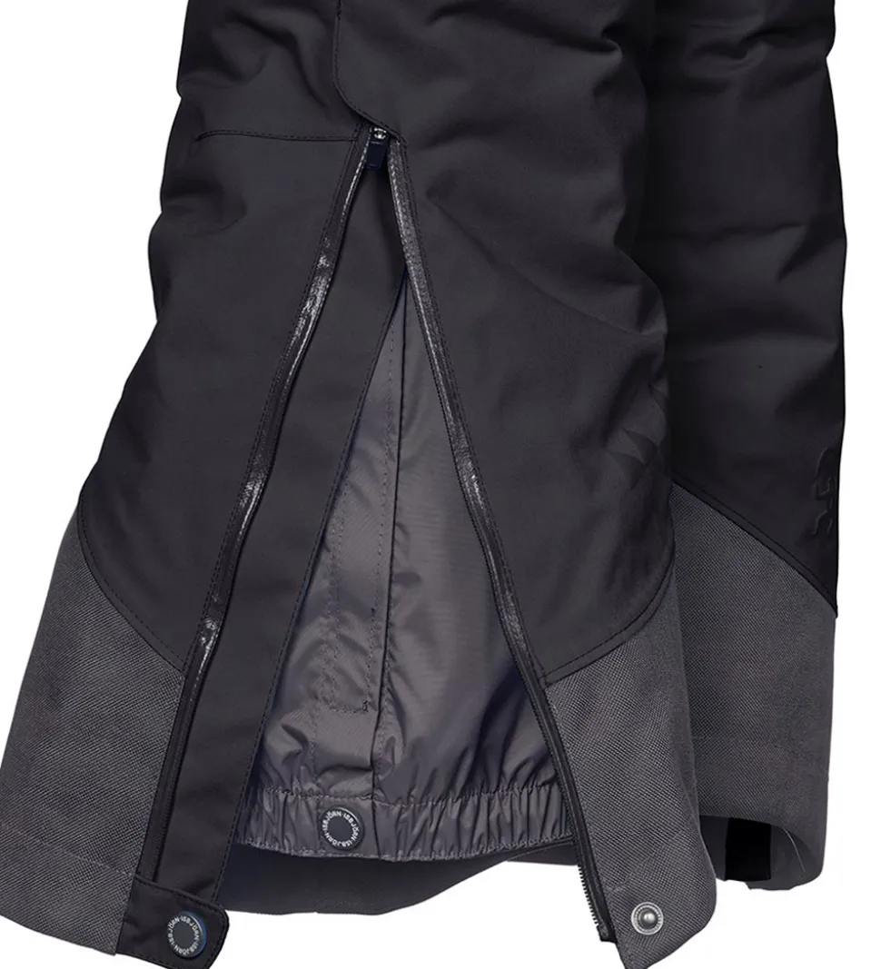 Isbjörn Of Sweden skibukserne åbnes fortil med to trykknapper og en lynlås. Der er to skrå lynlåslommer øverst i siderne fortil. I benåbningerne har de snefang med en elastikkant, der har en indvendig gummibelægning og kan åbnes op med en trykknap og velcro. Selve benåbningen kan også åbnes op ved hjælp af en trykknap og en lynlås.
