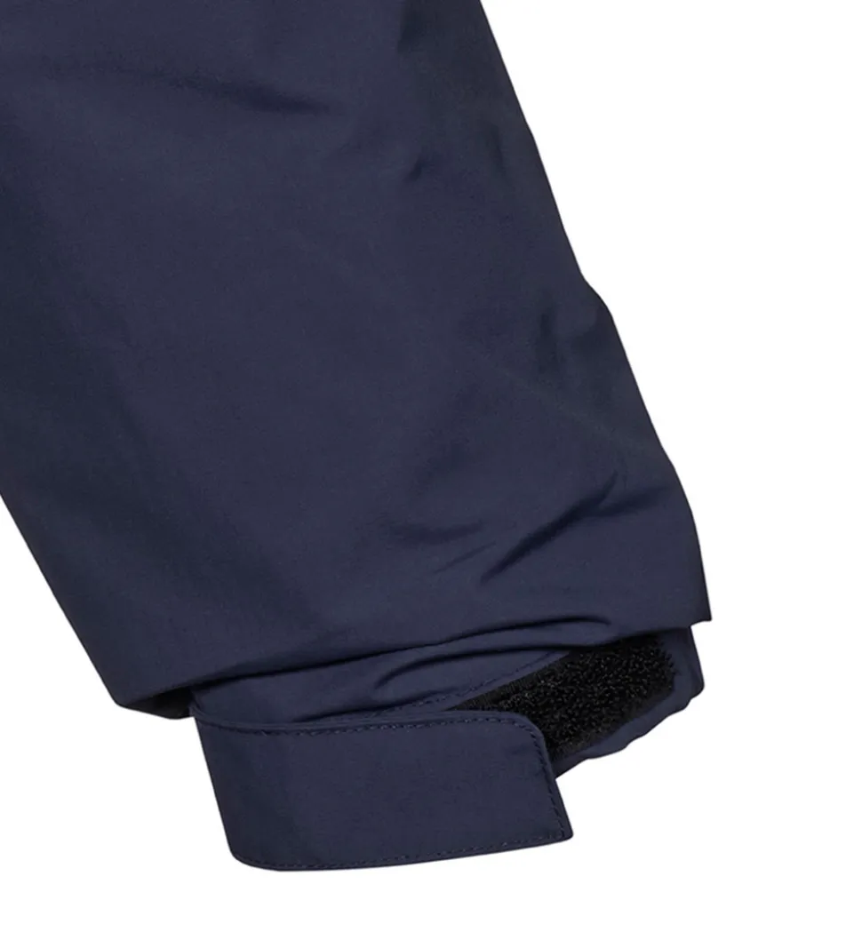 Ærmernes åbninger har praktiske elastikkanter, som kan spændes ind med velcro, og snefang med brede, elastiske kanter.