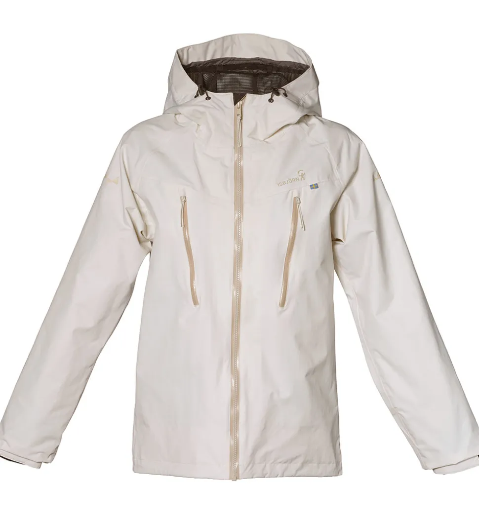 Isbjörn Of Sweden skaljakken har en fast hætte med en høj hals. Hætten har en skygge øverst i ansigtsåbningen og elastikkanter i siderne, og den kan justeres med spænder både fortil og på toppen af hovedet.