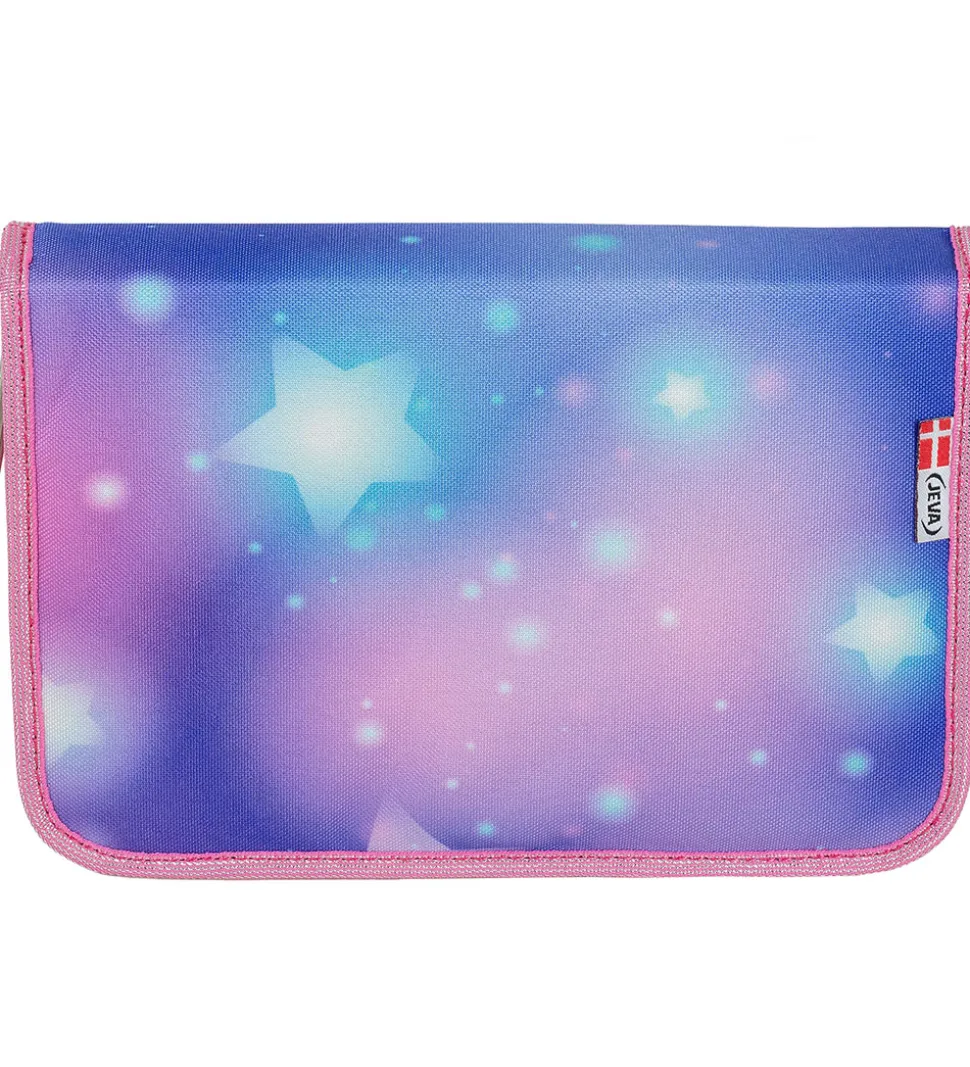 Flot Jeva penalhus i nuancer af lilla, blå og pink og med et smukt stjerneprint.
