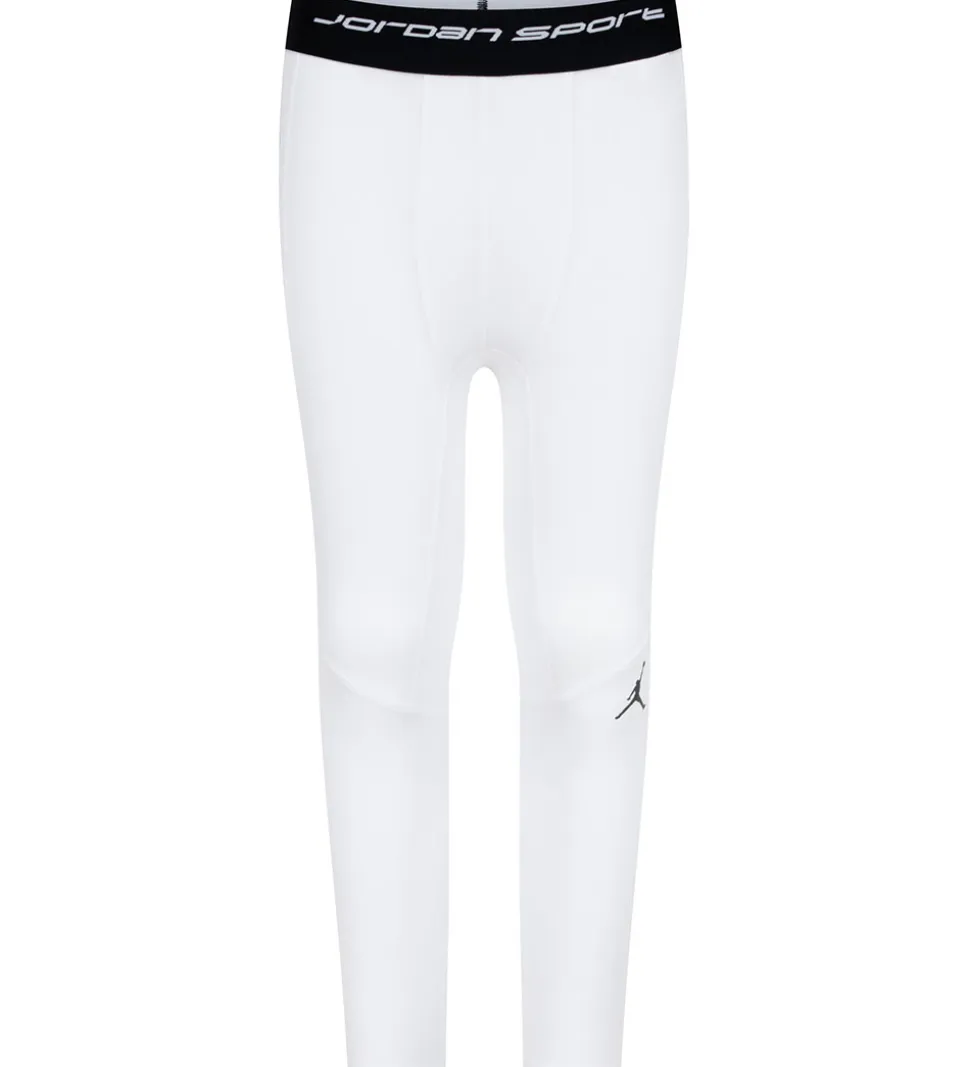 Friske Jordan leggings i en klar hvid nuance med et klassisk logoprint på siden. Disse leggings har en tætsiddende pasform, der giver en let og komfortabel fornemmelse under sport og aktiviteter.