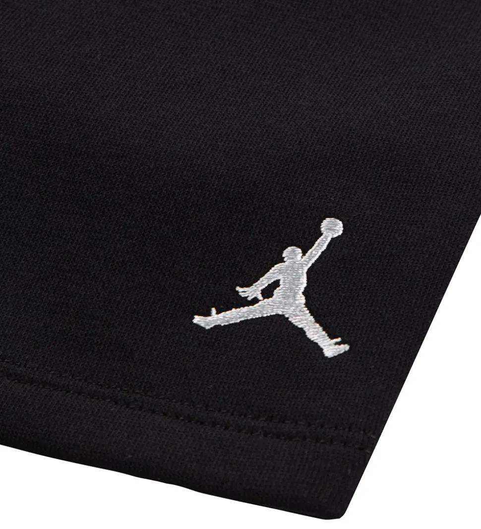 Smart Jordan shortssæt bestående af en t-shirt og et par sweatshorts. Begge dele er sorte med hvide broderede logo i venstre side.