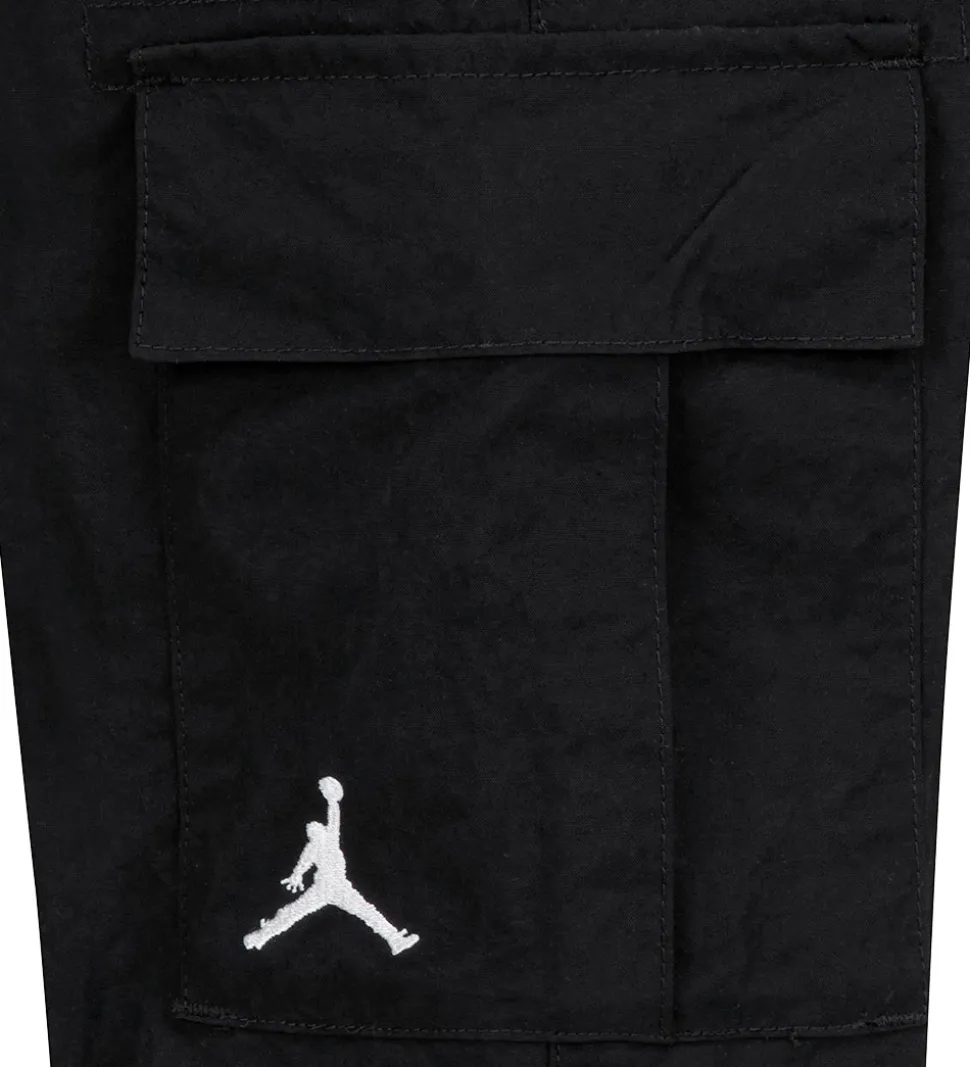 Praktiske Jordan skalbukser i ensfarvet sort i en fastvævet kvalitet, og midt på venstre bukseben er der broderetet hvidt logo.