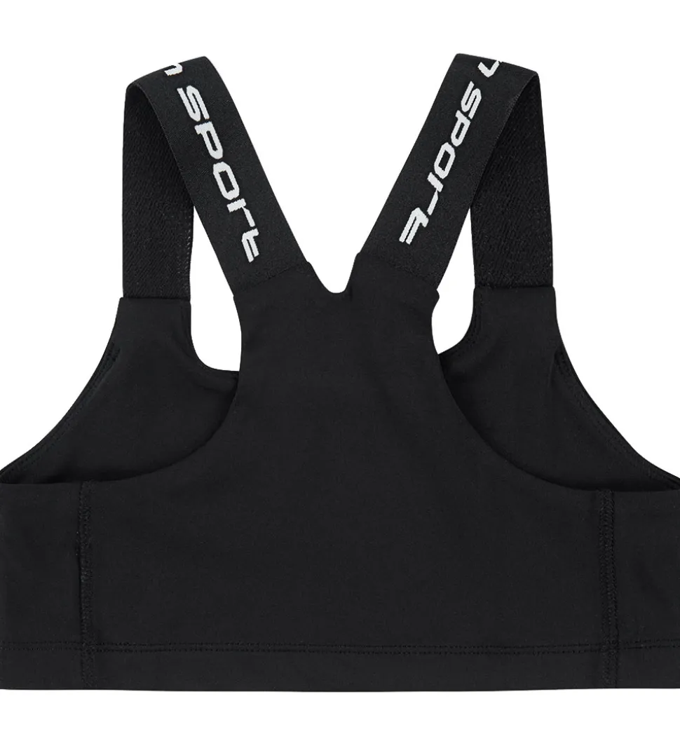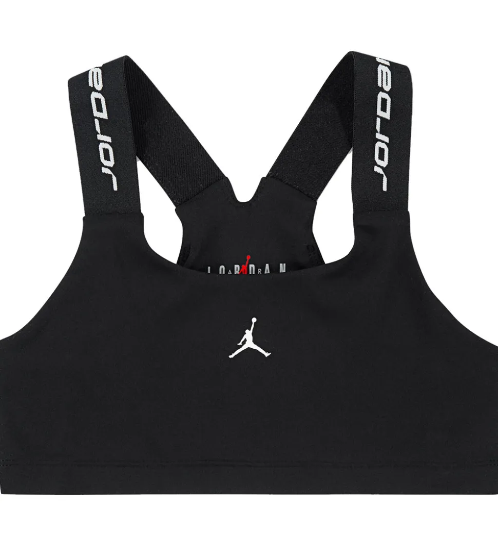 Skøn Jordan sportstop i en klassisk sort farve med brede stropper og flot logoprint på fronten. Den enkle design giver et sporty look med fokus på komfort og bevægelsesfrihed.