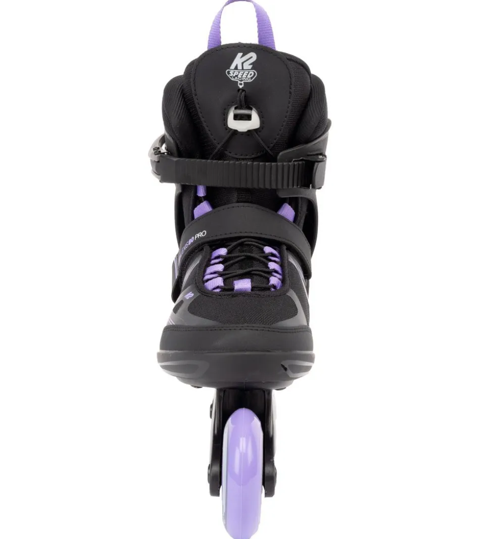 Flotte K2 rulleskøjter i sort med lilla detaljer.
