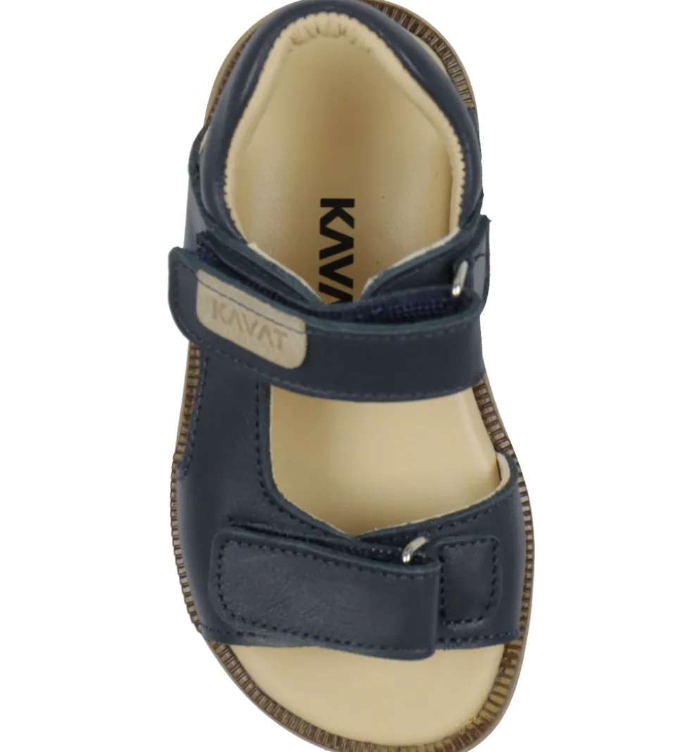 Smarte Kavat sandaler i navyblå skind med et lysebrunt logo på den øverste rem.