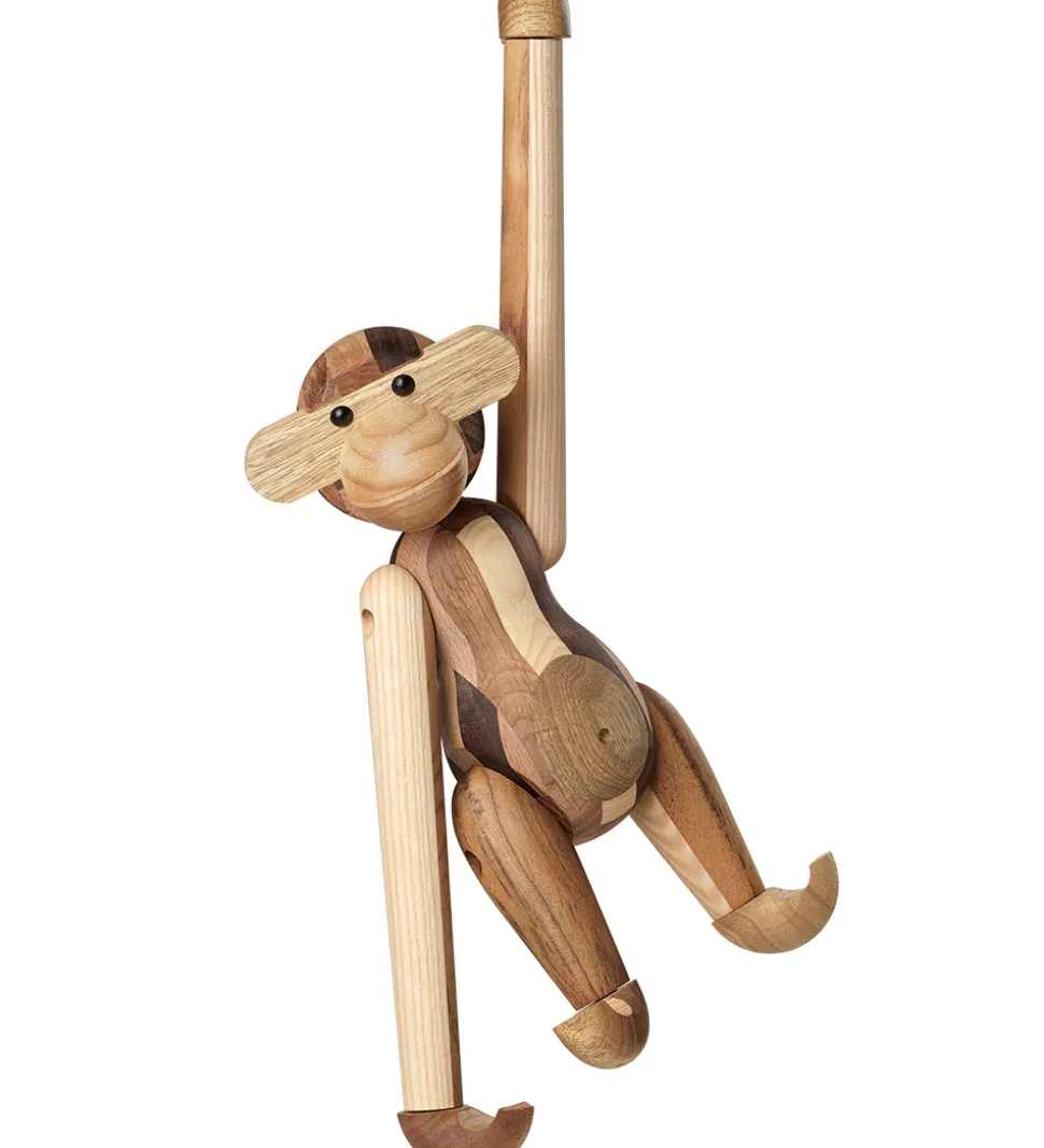 Skøn Kay Bojesen træfigur, der forestiller en abe lavet af flere forskellige træsorter og med et fint mønster.