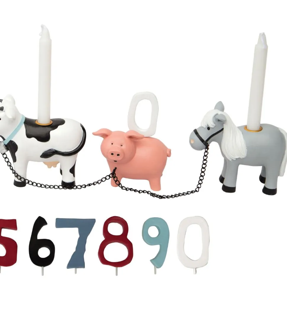 Der medfølger et dansk flag, som kan sættes ned i hullet der passer til. Der er to huller til lys, to huller til tal og et hul til et flag. Der medfølger tal i forskellige farver: ét tal fra 0 til 9 samt et ekstra 1-tal, så man kan bruge fødselsdagstoget i mange år.