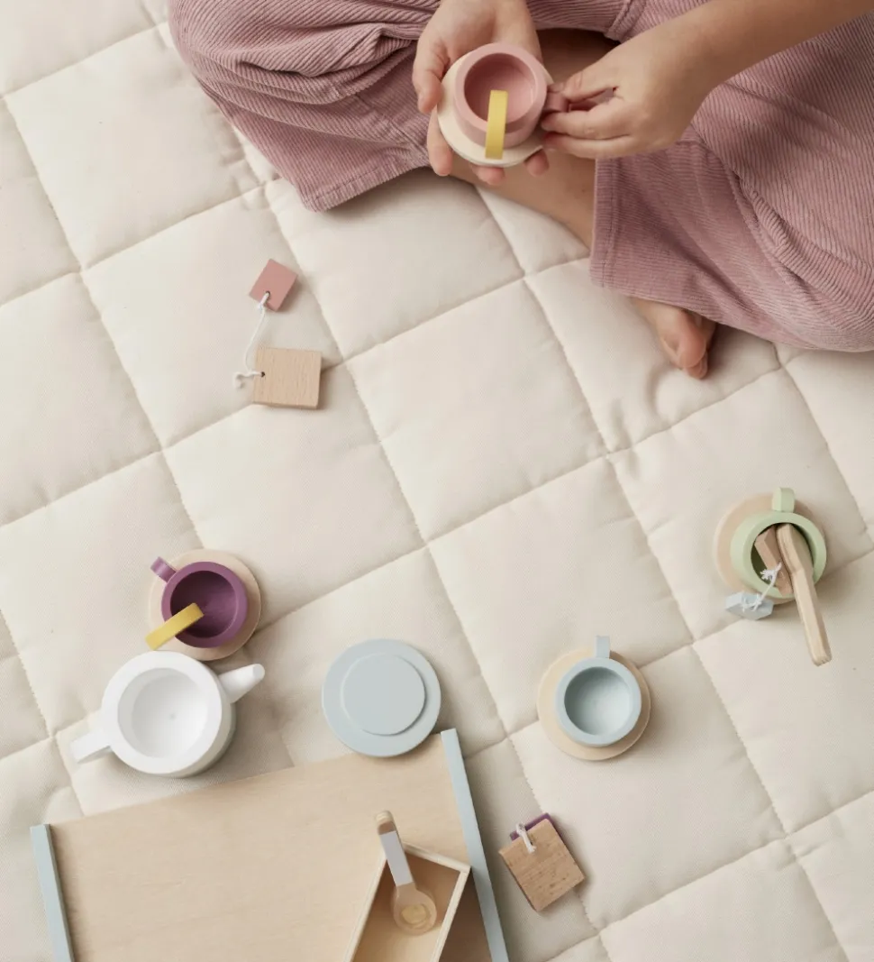 Kids Concept testellet indeholder alt, hvad barnet skal bruge for at lave et hyggeligt teselskab for bamser og dukker.
