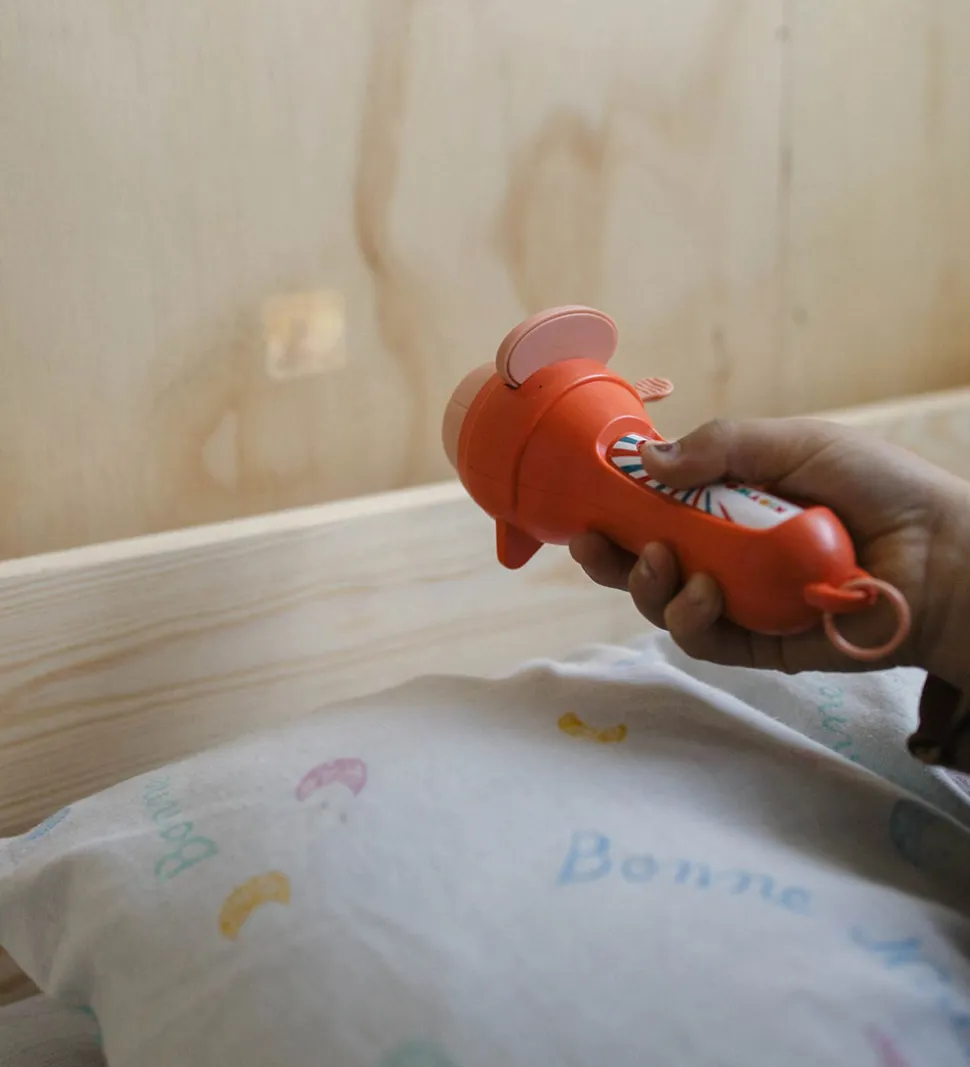 Kidywolf lommelygten fungerer som en projektor, som viser en historie på en hvid overflade. De medfølgende historier består af en plastikdisk, som sættes ind i lommelygten. Hver historie består af otte billeder, og lommelygten er den perfekte måde at afslutte dagen på med en hyggelig fortælling.