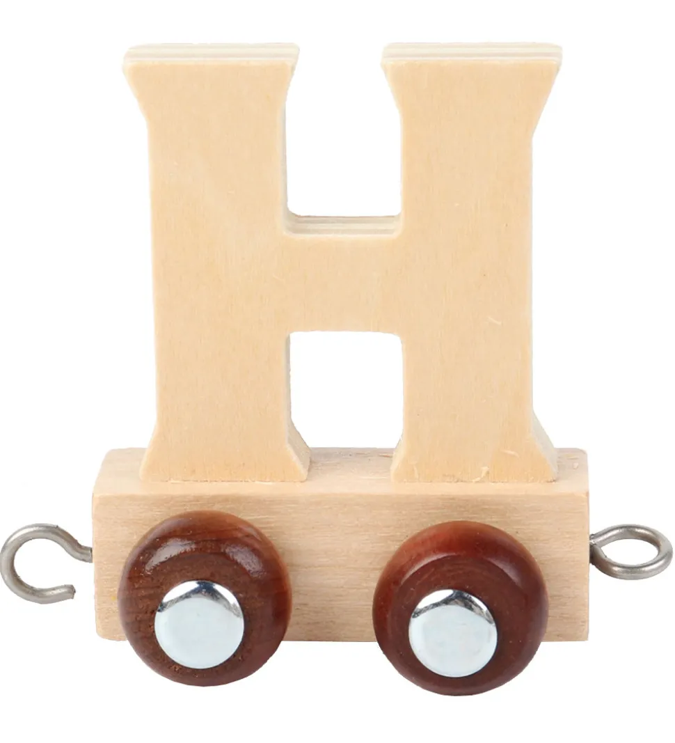 Fin Kinder and Kids navnetog togvogn med bogstavet H i naturligt træ.