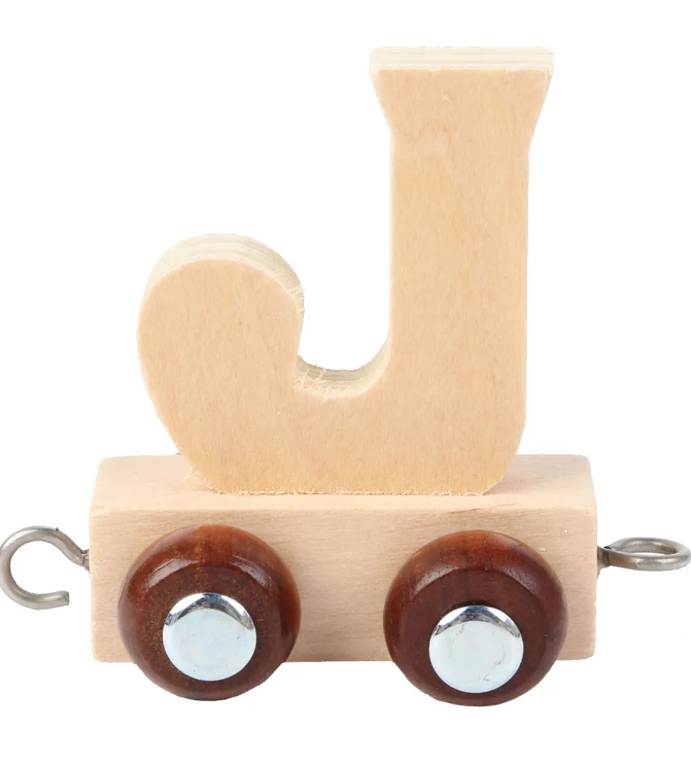 Fin Kinder and Kids navnetog togvogn med bogstavet J i naturligt træ.