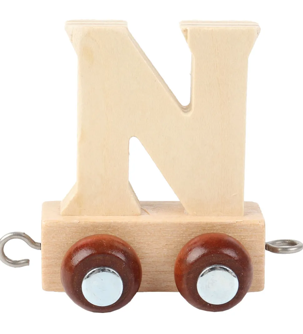 Fin Kinder and Kids navnetog togvogn med bogstavet N i naturligt træ.
