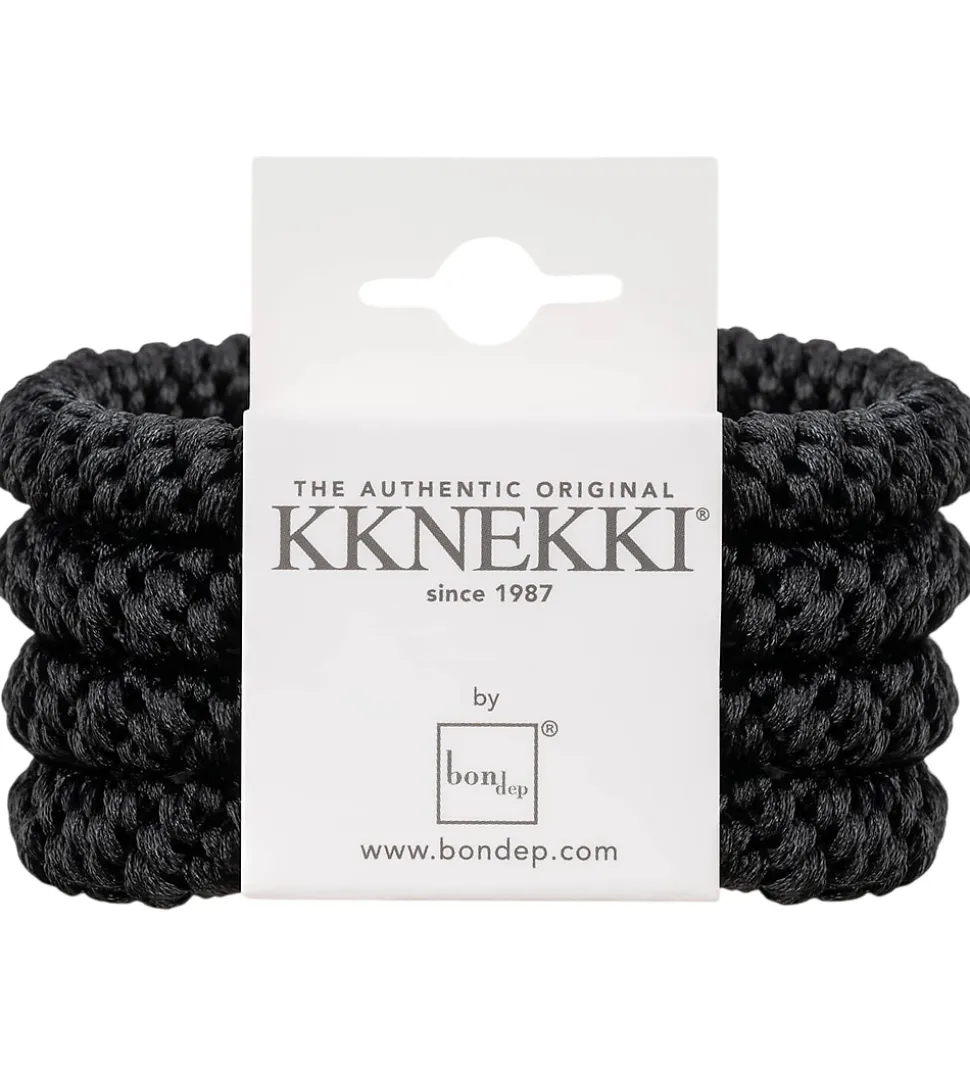 Fine Kknekki hårelastikker solgt i en 4-pak i ensfarvet sort.