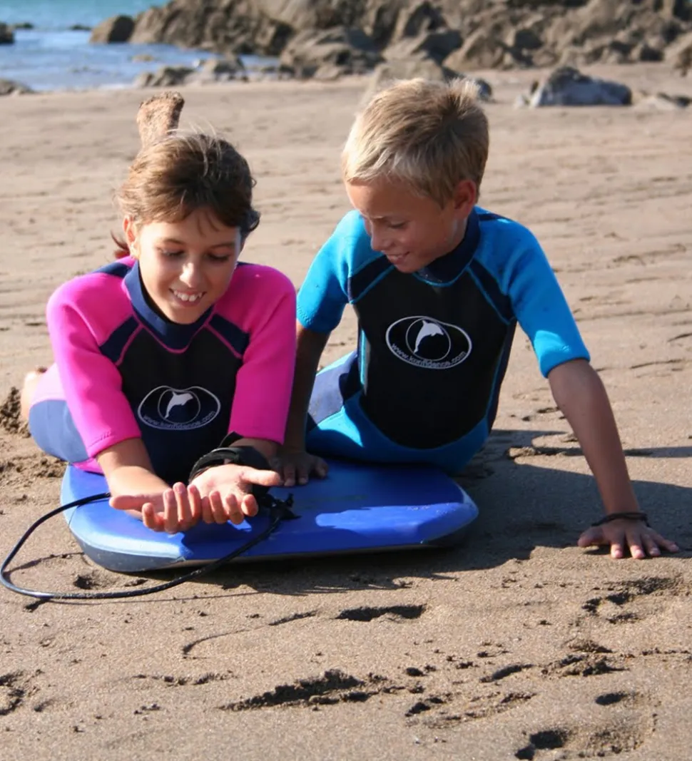 Konfidence våddragten har høj hals og korte arme og ben med gummikanter. Våddragten lukkes bagtil med lynlås, som har en indvendig søjle, der sikrer, at lynlåsen ikke kommer i kontakt med huden. Lynlåsen har også en velcrostrop øverst, som holder den lukket, og desuden et langt bånd på selve lynlåsen, så dit barn selv kan lyne op og ned.