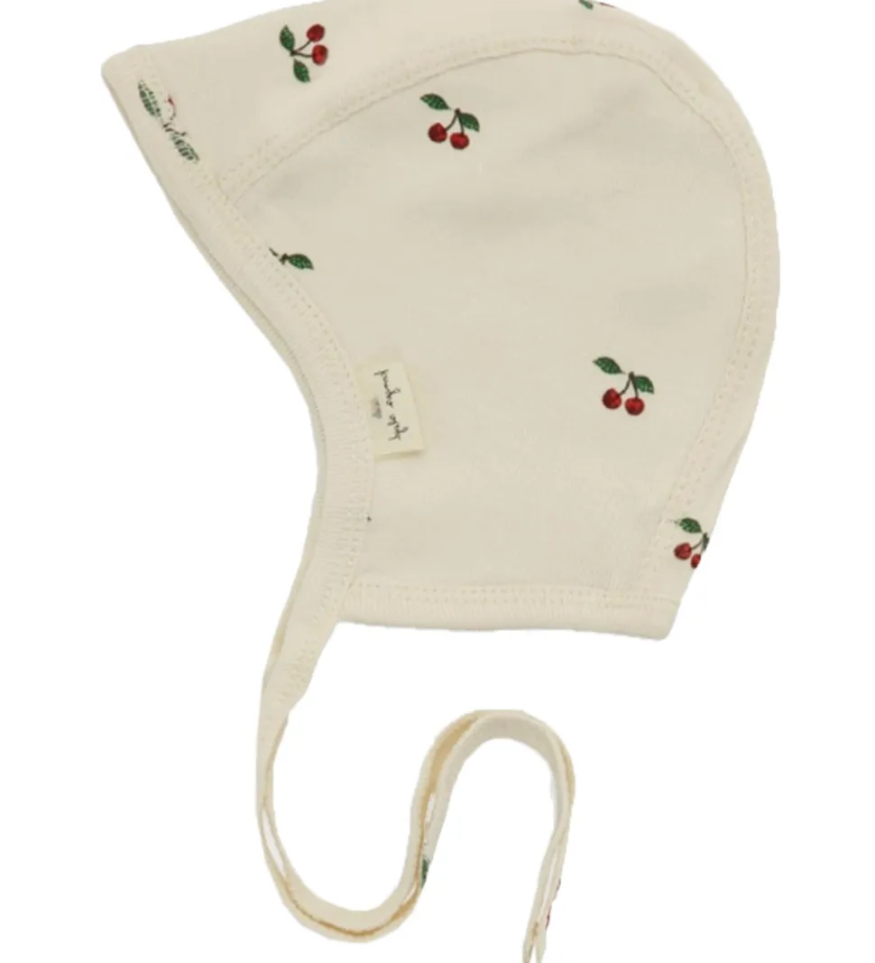 Sød Konges Sløjd babyhjelm i cremehvid med print af kirsebær.