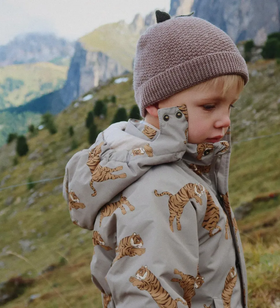 Charmerende Konges Sløjd hue i en meleret, brun nuance med en fin ribkant.