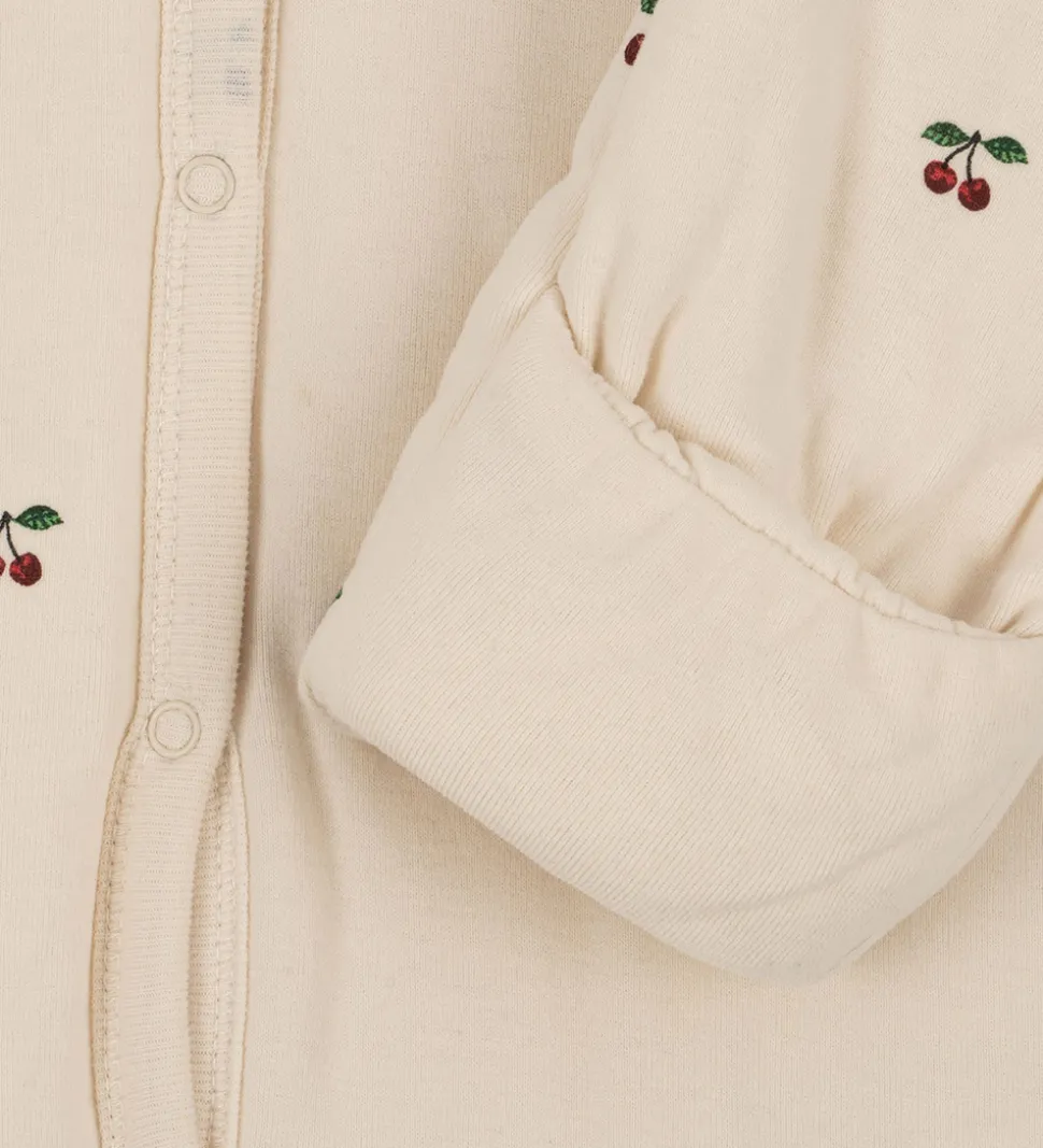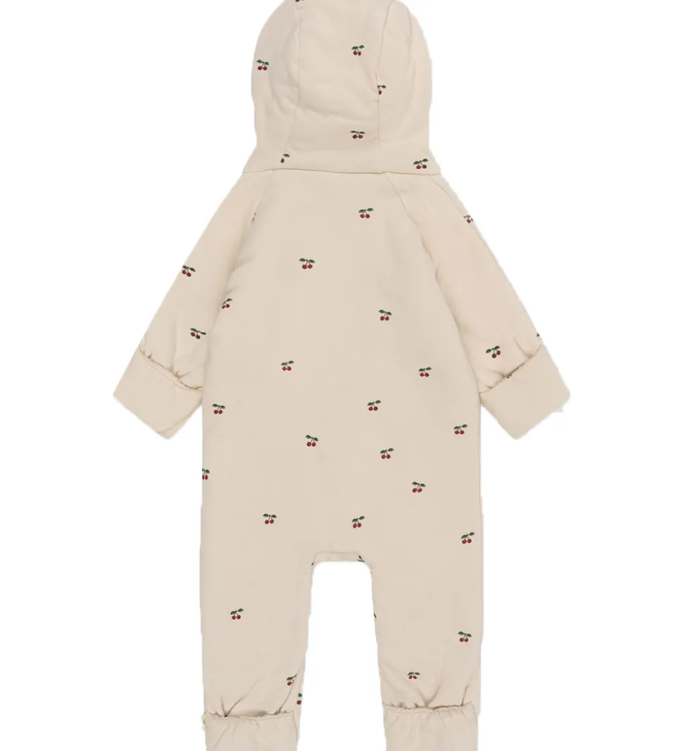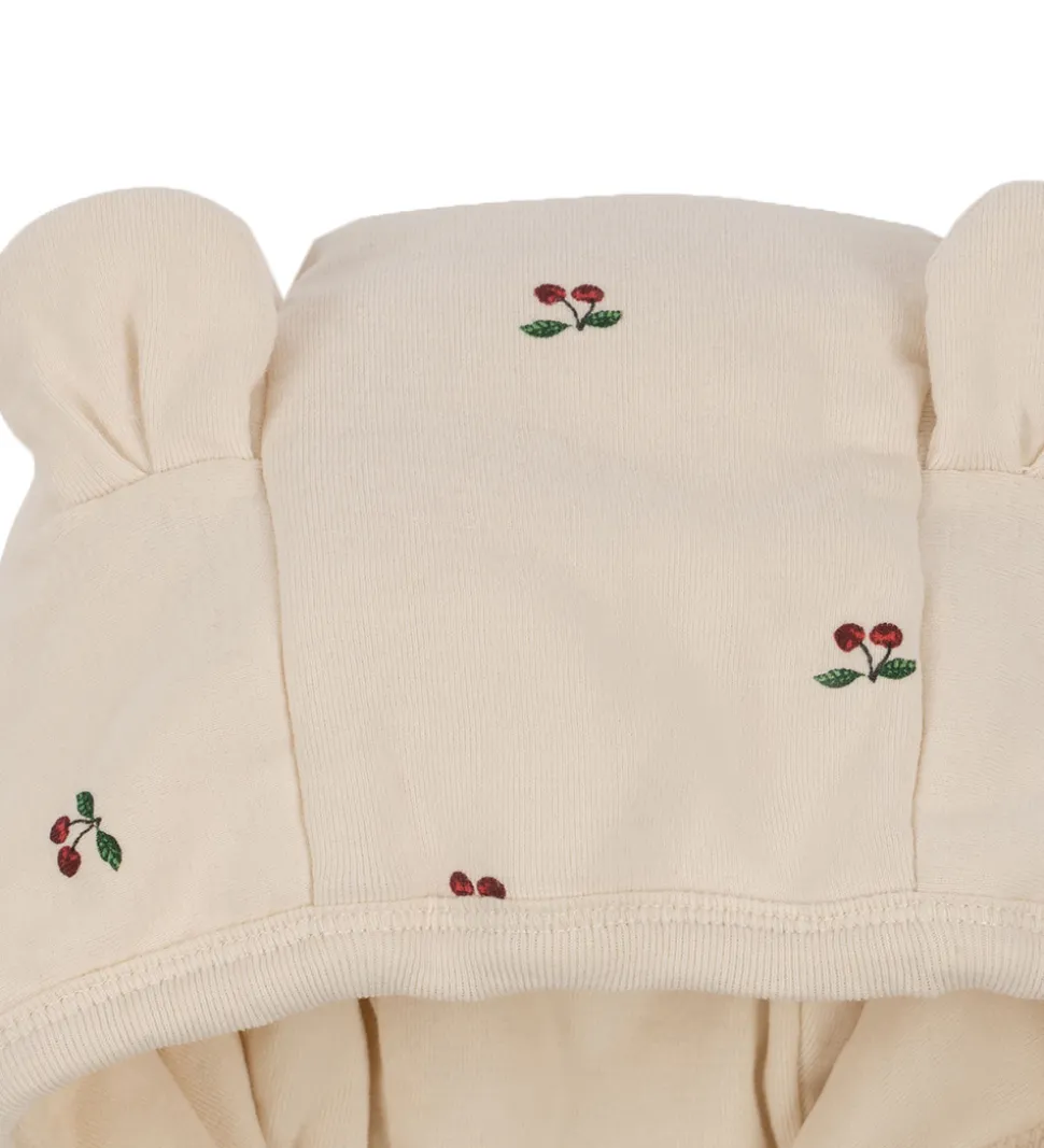 Flot Konges Sløjd køredragt i cremehvid med print af kirsebær.