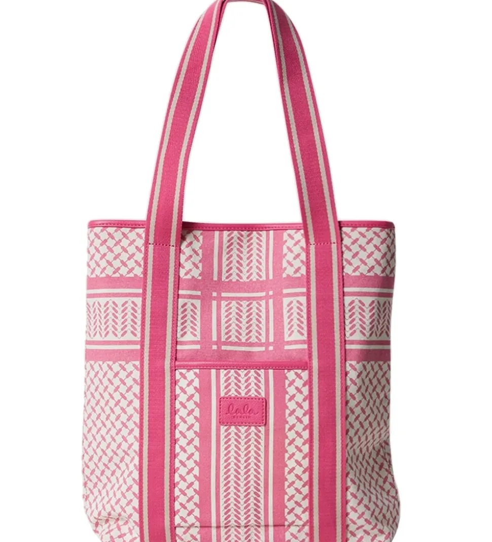 Smart Lala Berlin shopper i off-white kanvas med det klassiske Kufiya print i pink.