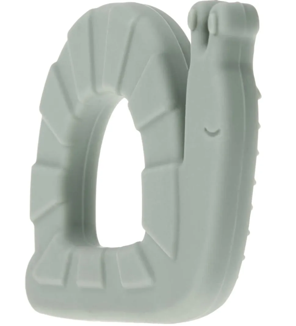 Lässig bideringen er lavet af blødt silikone med mønstrede strukturer, som er gode for gummer og tænder, samtidig med at den er sjov at lege med. Bideringen rengøres med kogende vand eller i opvaskemaskinen.