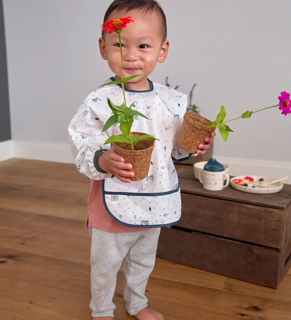 Lässig forklæderne har lange ærmer og fortil er der en lomme i bunden til at opsamle spildt mad og drikke. I armåbningerne er der smalle elastikkanter.