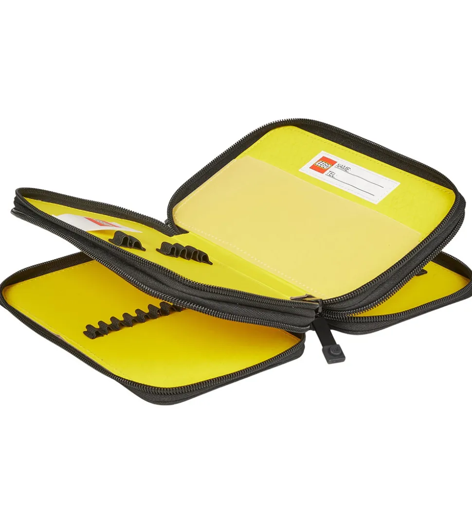 LEGO® City penalhuset består af tre separate rum, der alle åbnes med lynlås. To af rummene har elastik, som hver kan holde 18 smalle ting, som f.eks. blyanter, farver eller lignende. De sidste rum har ligeledes elastik, som kan holde fire smalle ting og tre større ting, som f.eks. viskelæder, lineal eller vinkelmåler. Indvendigt er der gult tekstil og i det ene rum er der plads til at skrive navn og telefonnummer.