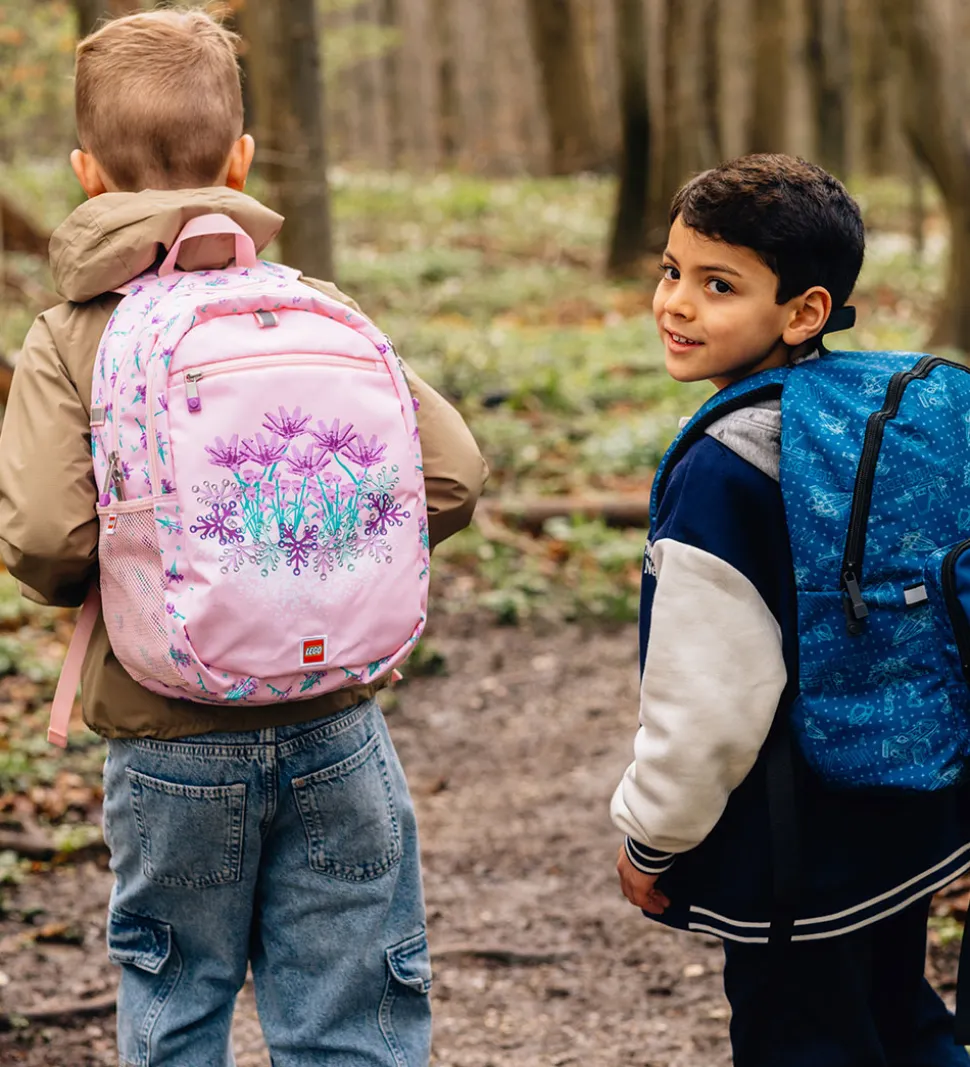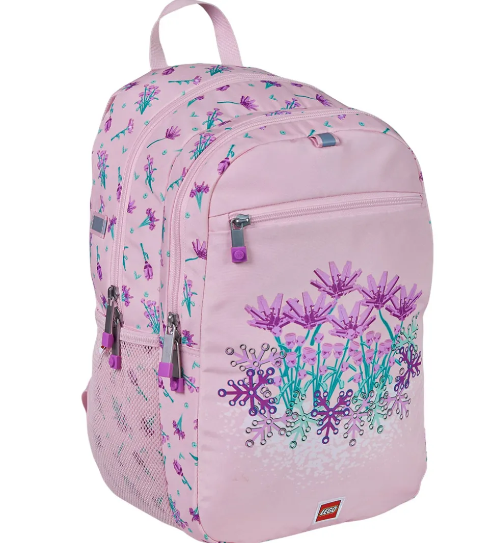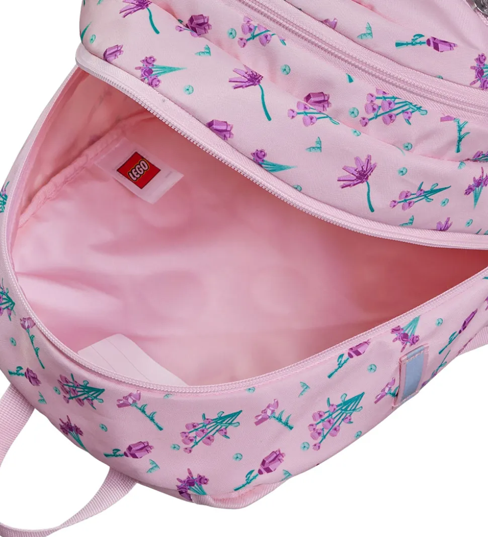 Fin LEGO® rygsæk i rosa med print af LEGO® blomster i lilla og grønne nuancer.