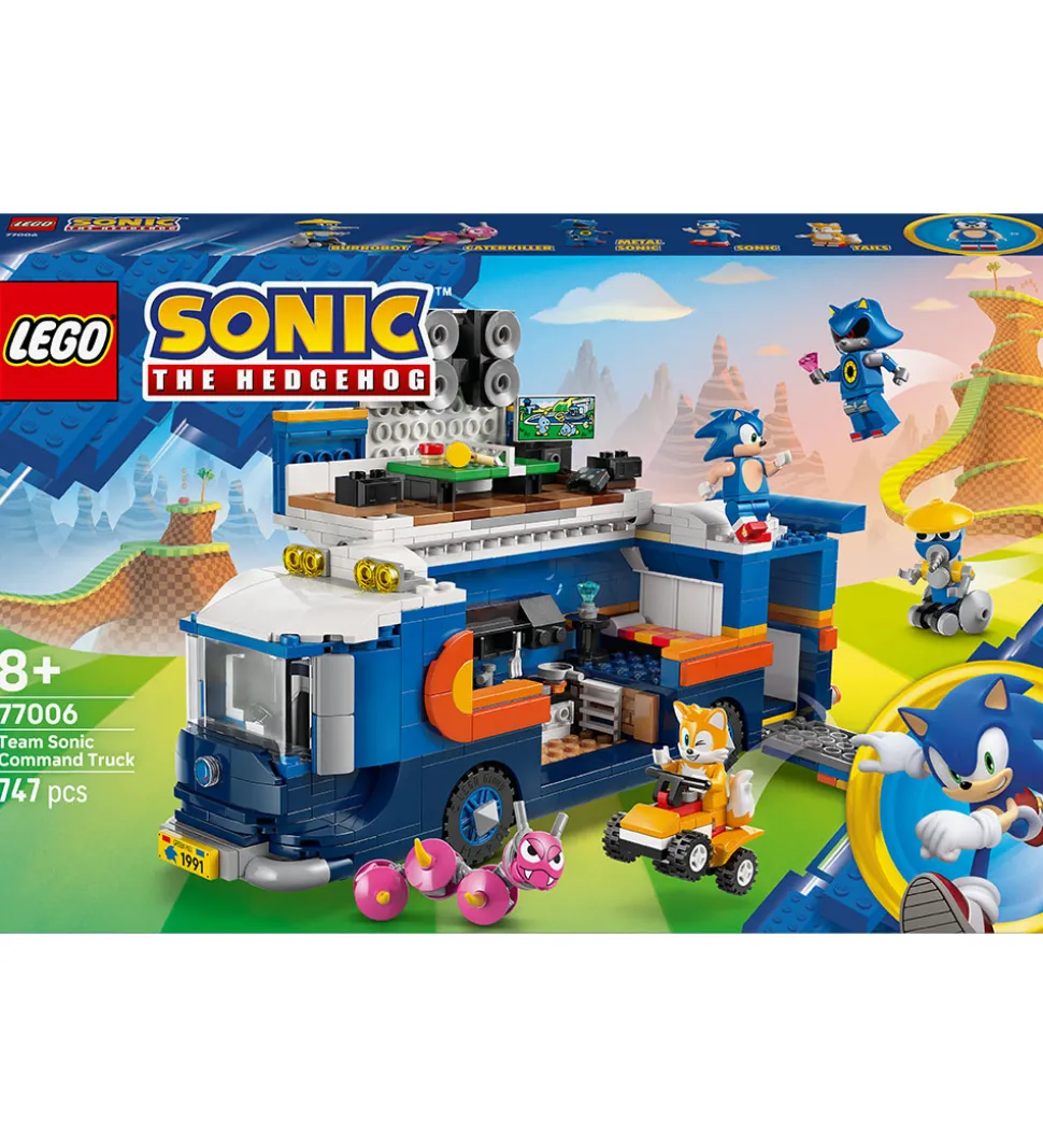 Detaljeret LEGO® Sonic sæt med i alt 747 klodser, som kan samles til Team Sonic Command Truck. Sættet indeholder figurer af Sonic, Tails, Knuckles og flere af deres modstandere, samt tilbehør som køretøjer, små fjender og indvendige detaljer i lastbilen.