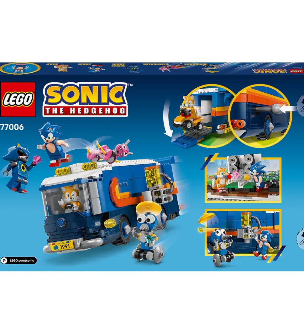LEGO® Sonic sættet giver mulighed for at bygge en lastbil med åbne sidepaneler, tagterrasse og kontrolrum indvendigt. Der medfølger desuden små elementer som et gokartlignende køretøj til Tails og fjendtlige figurer, som kan placeres i forskellige opstillinger for at skabe en komplet scene.