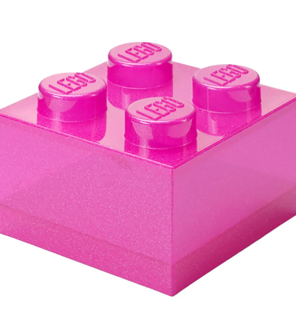Smart LEGO® Storage opbevaringsboks i lyserød med glimmer som en ægte LEGO® klods.