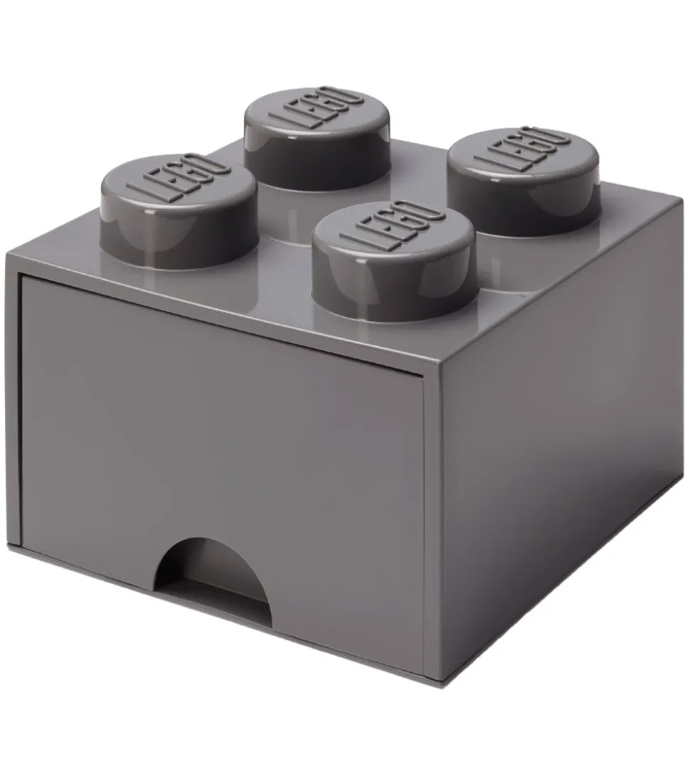 Praktisk LEGO® Storage skuffe formet som en LEGO® klods i mørkegrå med fire knopper på toppen.