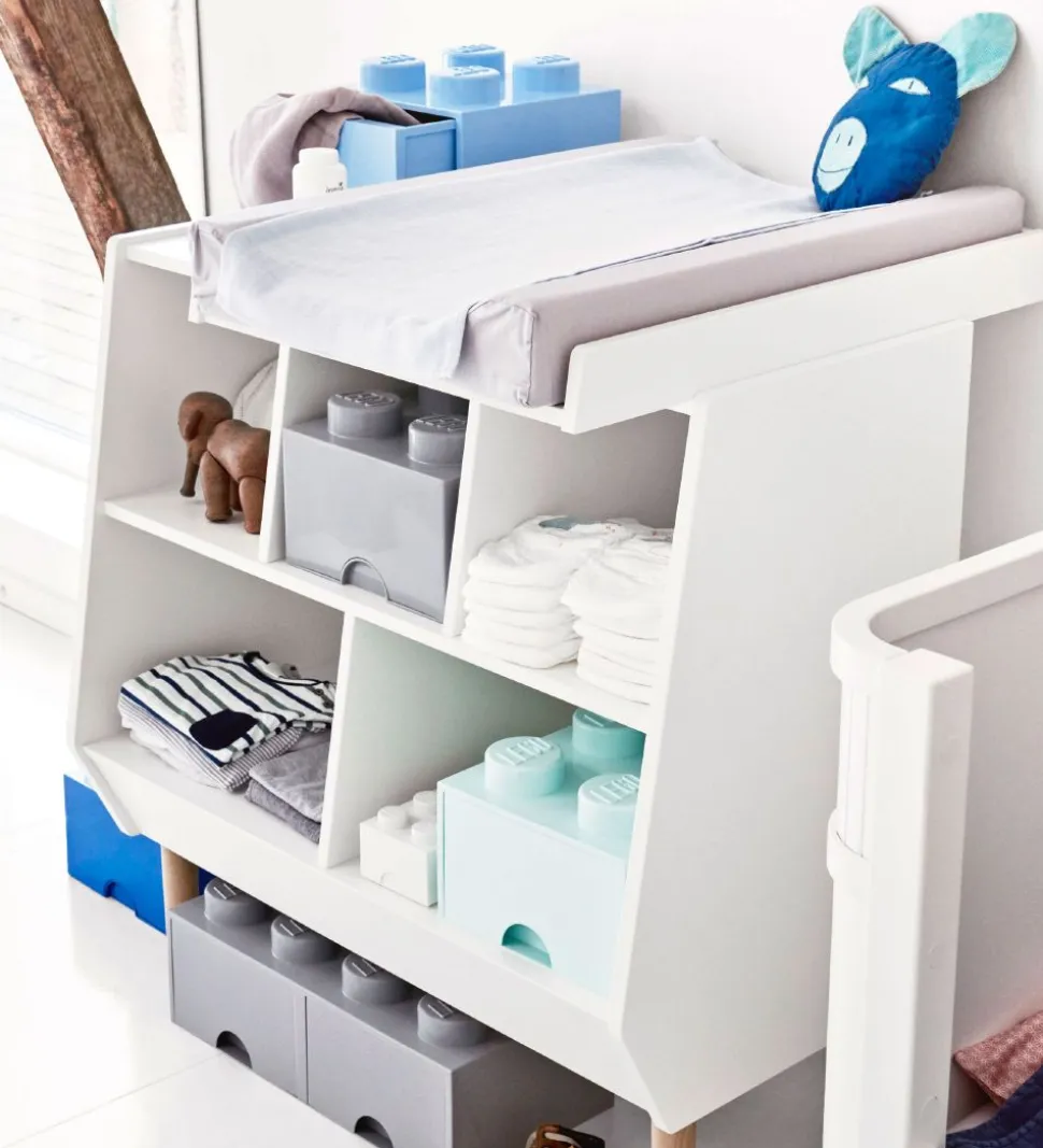 Opbevaringsskuffen har ét rum og har plads til lidt af hvert – det kunne jo være LEGO®. Der er et håndtag i bunden af skuffen, så den er nem at trække ud.