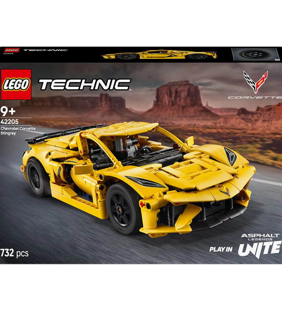 LEGO® Technic sættet gengiver Corvette Stingrays ikoniske design med aerodynamiske linjer og et sporty udtryk. Modellen har bevægelige dele og kan bruges både som en udstillingsmodel og til interaktiv leg.