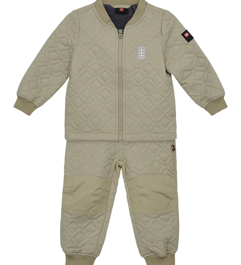 Fint LEGO® Wear termotøj i lys, støvet grøn med en quiltet struktur og velplacerede logoreflekser.