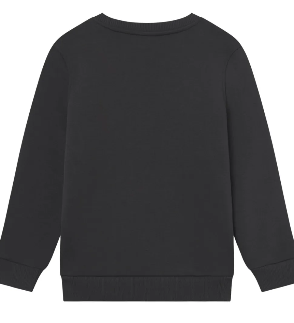 Elegant Les Deux sweatshirt i en klassisk, mørkegrå farve med et markant logo i blå på forsiden. Les Deux sweatshirten har lange ærmer og en rund hals, sammen med ribkanter ved hænder og talje, hvilket tilfører en tidløs struktur.