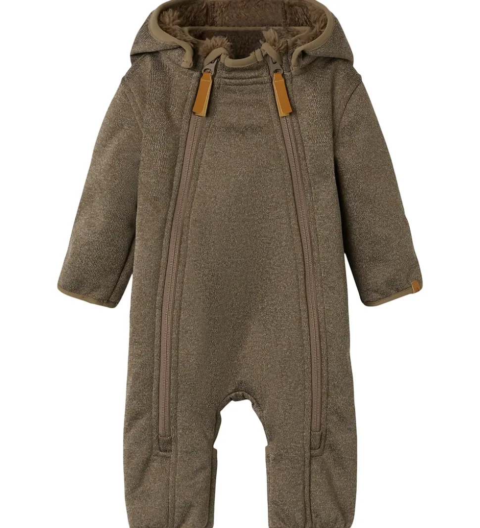 Charmerende Lil’ Atelier køredragt i en varm brun nuance med en strikket struktur.