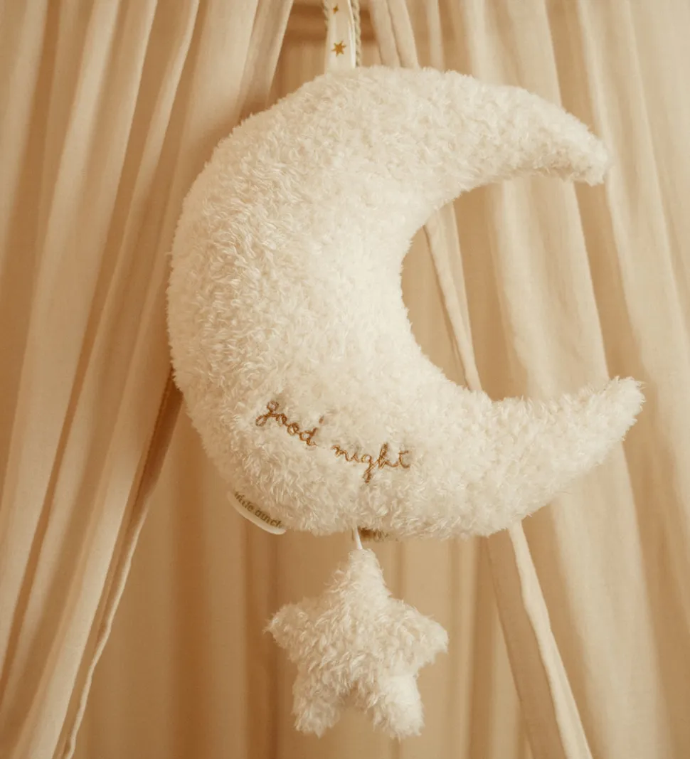 Musikuroen har en sød stjerne og broderet tekst, der skaber en hyggelig atmosfære i børneværelset. Den hænges op med to bindebånd, og når man trækker i stjernen, bliver baby taget med på fantastiske drømmeeventyr når melodien spiller.