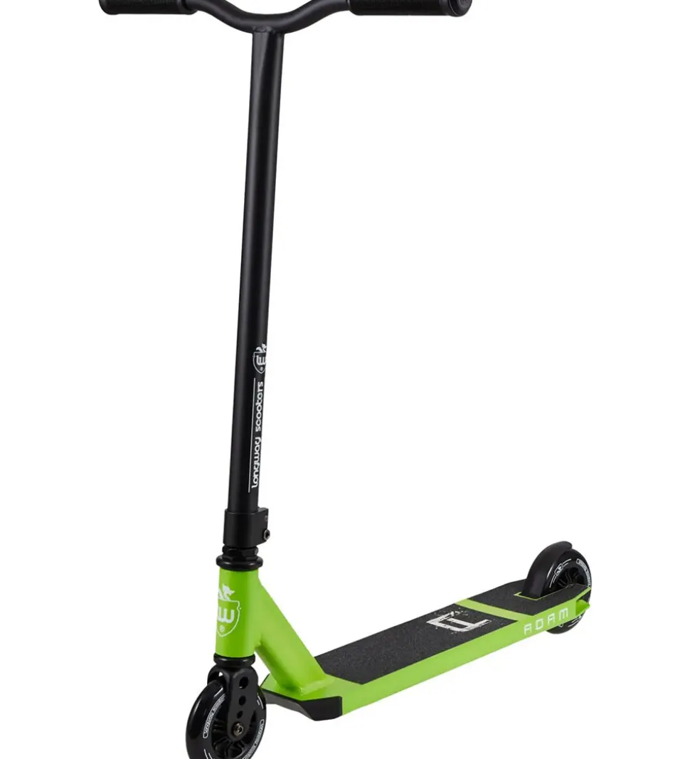 Longway løbehjulet i modellen Adam passer godt til de større børn. Det er et godt trick-løbehjul, men det er ikke bygget til vild rampekørsel. Fodpladen har en overflade af sandpapir, så barnet står sikkert på den. Håndtagene yder et godt greb og der er en rear flex-bremse på det bagerste hjul. Hjulene er i hård gummi. Løbehjulet meget letvægtigt og robust, så det er nemt at lave tricks på, samtidig med at det holder i mange år.