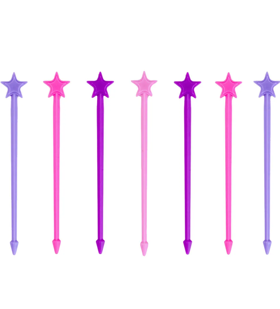 Flotte Lunch Punch madpinde med en stjerne i toppen og solgt som en 7-pak med farverne rosa, pink, lilla og mørk lilla.