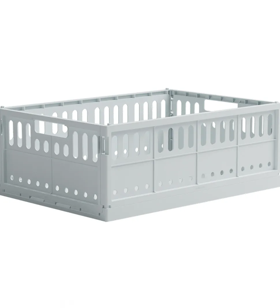 Made Crate foldekassen samles ved at klikke alle hjørnerne sammen, og den foldes nemt sammen igen. Foldekassen kan bruges til opbevaring af f.eks. kreating, tøj, nips, legetøj, plejeprodukter og eller noget helt andet. I begge ender er der praktiske håndtag, og foldekassen kan stables med flere af samme størrelse.