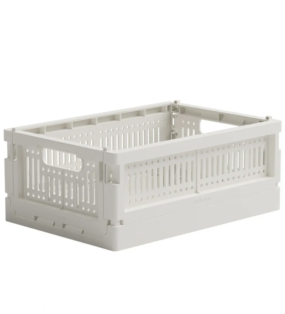 Made Crate foldekassen samles ved at klikke alle hjørnerne sammen, og den foldes nemt sammen igen. Foldekassen kan bruges til opbevaring af f.eks. kreating, tøj, nips, legetøj, plejeprodukter og eller noget helt andet. I begge ender er der praktiske håndtag, og foldekassen kan stables med flere af samme størrelse.