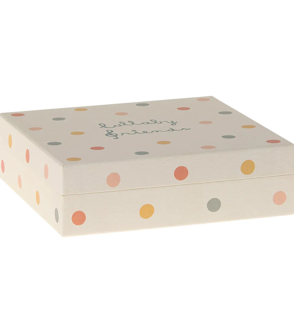 Maileg uroen består af en ring, hvorfra vedhængene hænger. I toppen er der en lang snor, så den er let at hænge op. Uroen er med til at skabe en hyggelig og stemningsfuld atmosfære på børneværelset.
