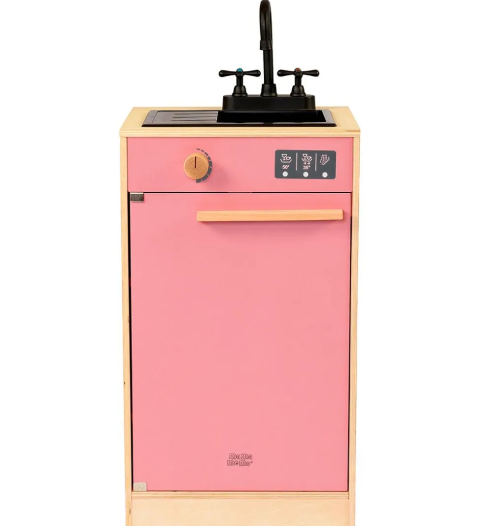 Sjov MaMaMeMo opvaskemaskine med vask i naturlig træ og rosa.
