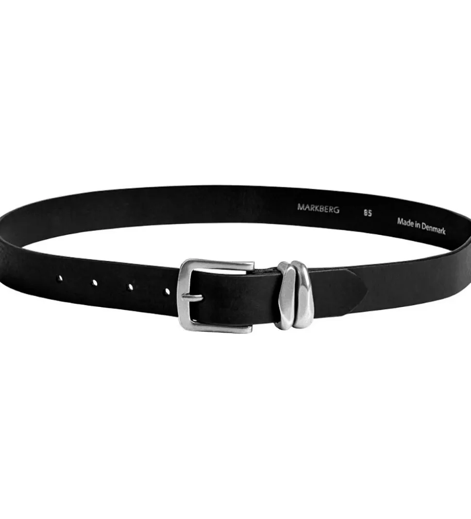 Flot Markberg bælte i sort læder med et metalspænde i sølv.