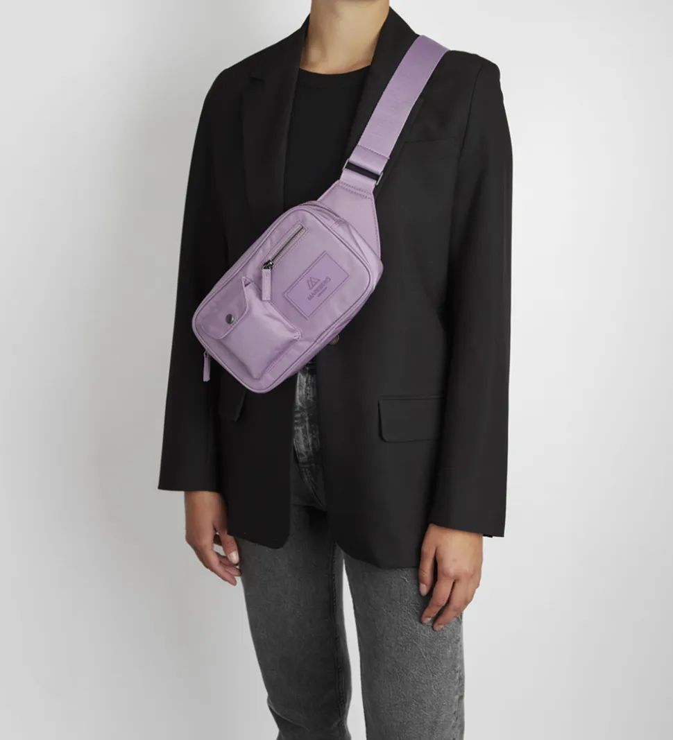 Flot Markberg bæltetaske i lilla med et logo fortil.