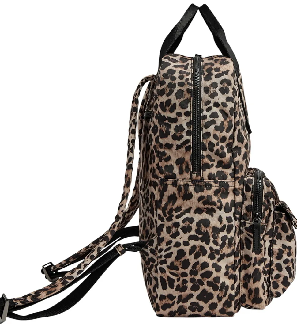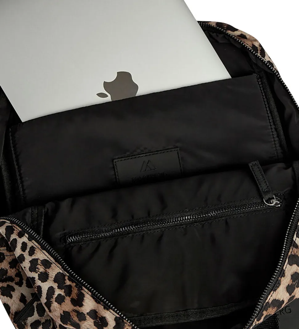 Smart Markberg rygsæk med leopardprint i brun og sort og med et logo fortil.