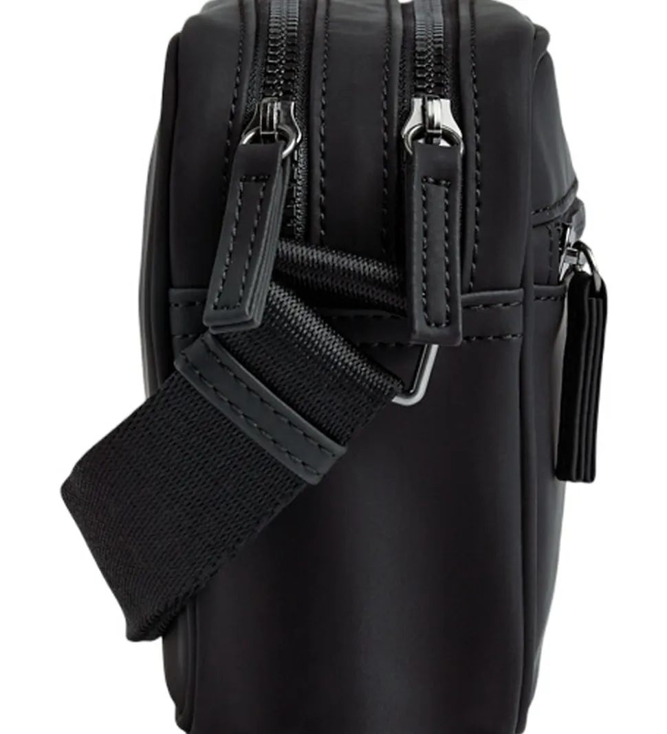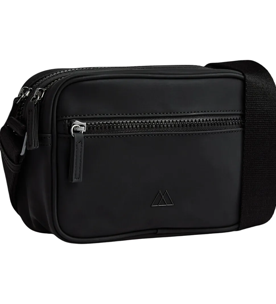 Flot Markberg skuldertaske i ensfarvet sort med et logo fortil.