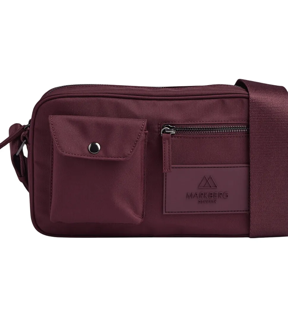 Flot Markberg skuldertaske i bordeauxrød med et logo fortil.